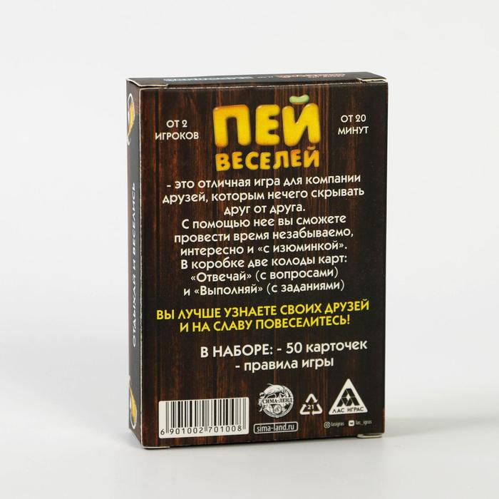 Купить игра для компании "пей веселей" 50 карт от 180 руб. с доставкой до пункта выдачи в Николаевске. Интернет магазин ДекаМаркет. Оплата при получении.